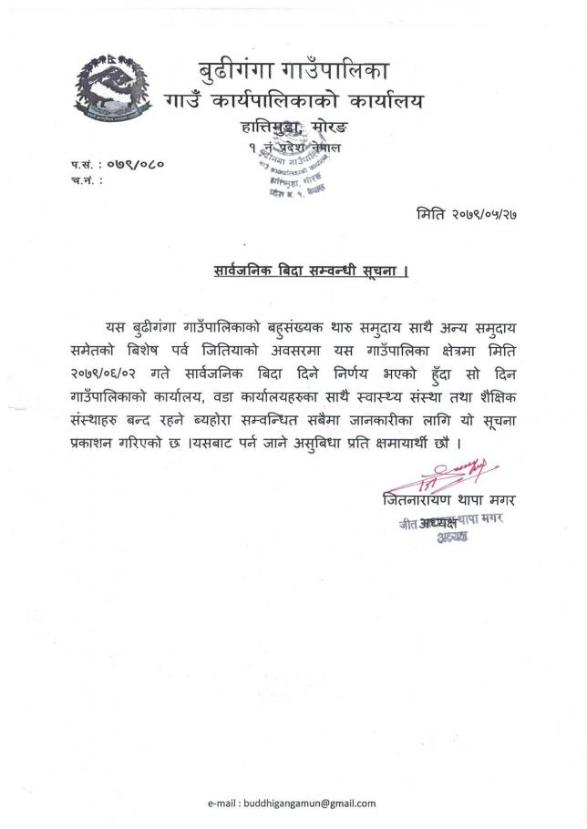 सार्वजनिक बिदा सम्बन्धि सूचना