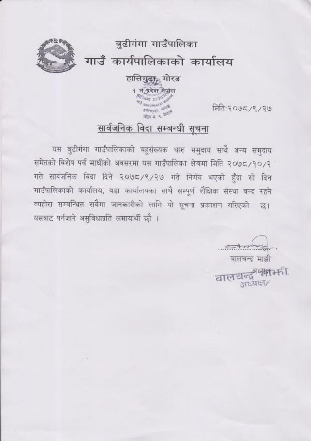 » सार्वजनिक विदा सम्बन्धी सूचना