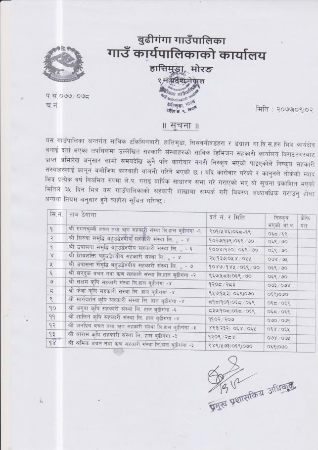 १५ दिने सूचना ।