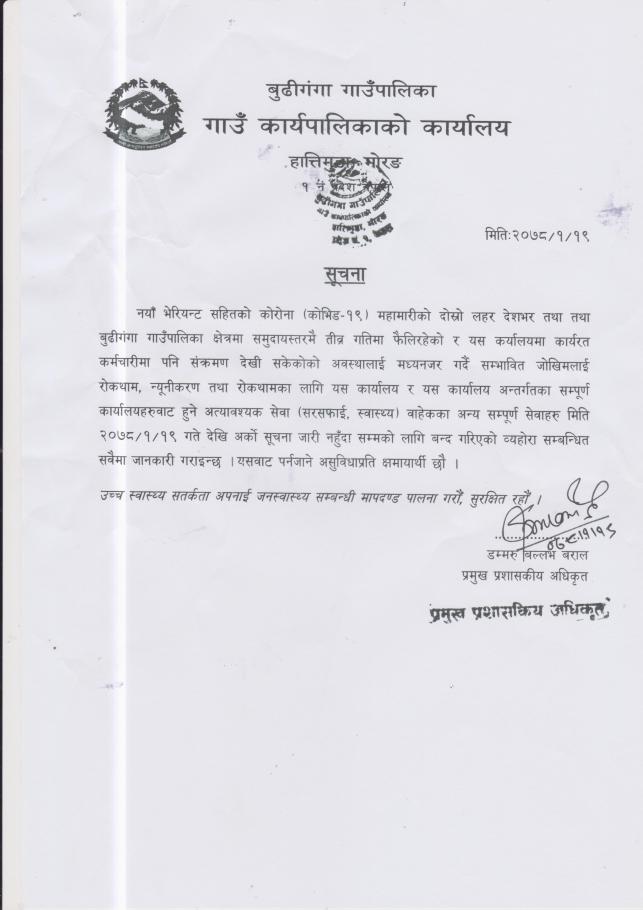 बुढीगंगा गाउँपालिका, गाउँ कार्यपालिकाको कार्यालय