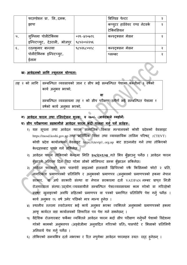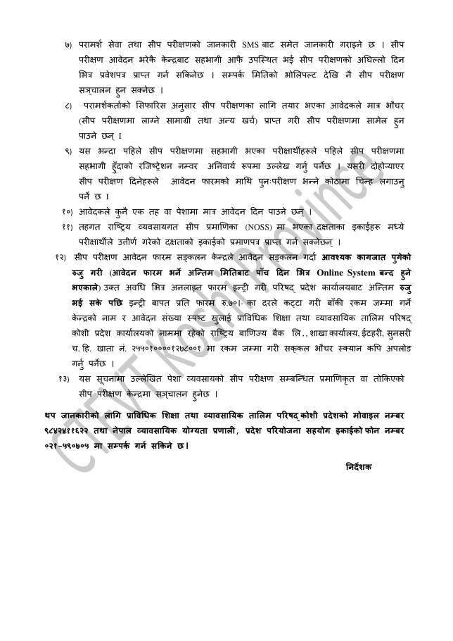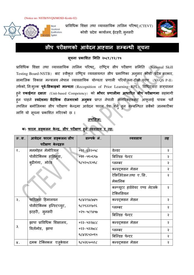 सीप परीक्षणको आवेदन आह्‍वान सम्बन्धी सूचना