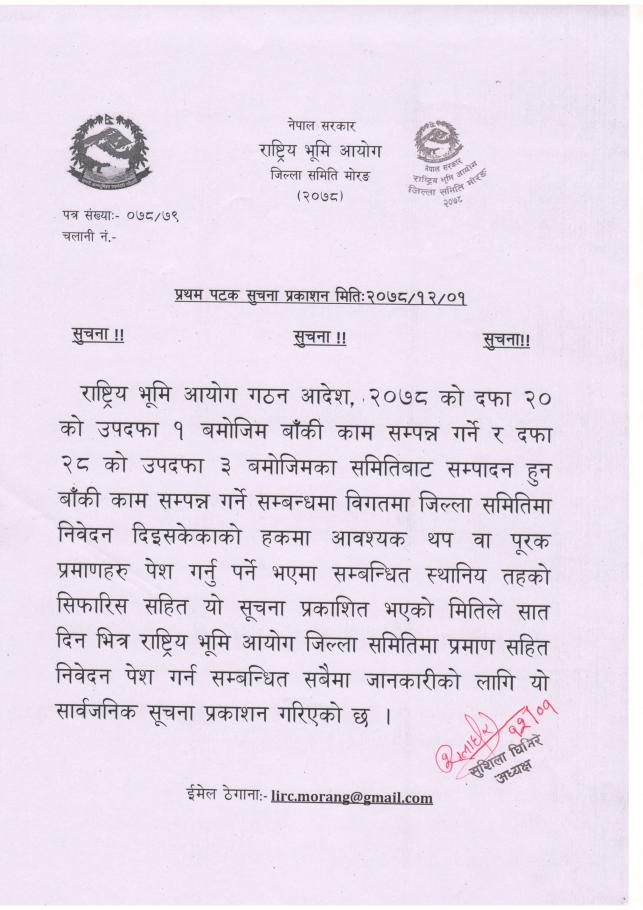 प्रस्तावना आव्हान सम्बन्धि सूचना ।