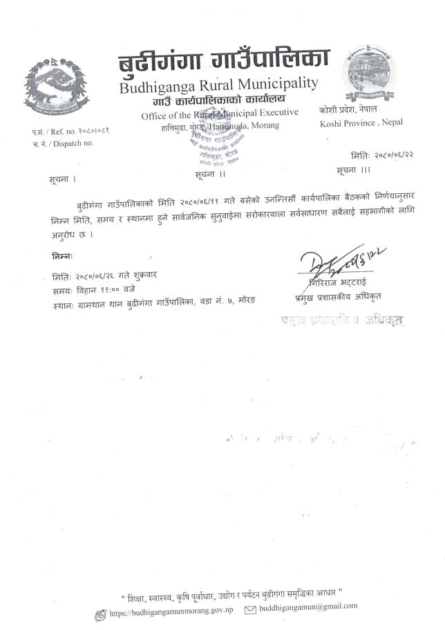 सूचनाः सार्वजनिक सुनुवाई सम्बन्धमा