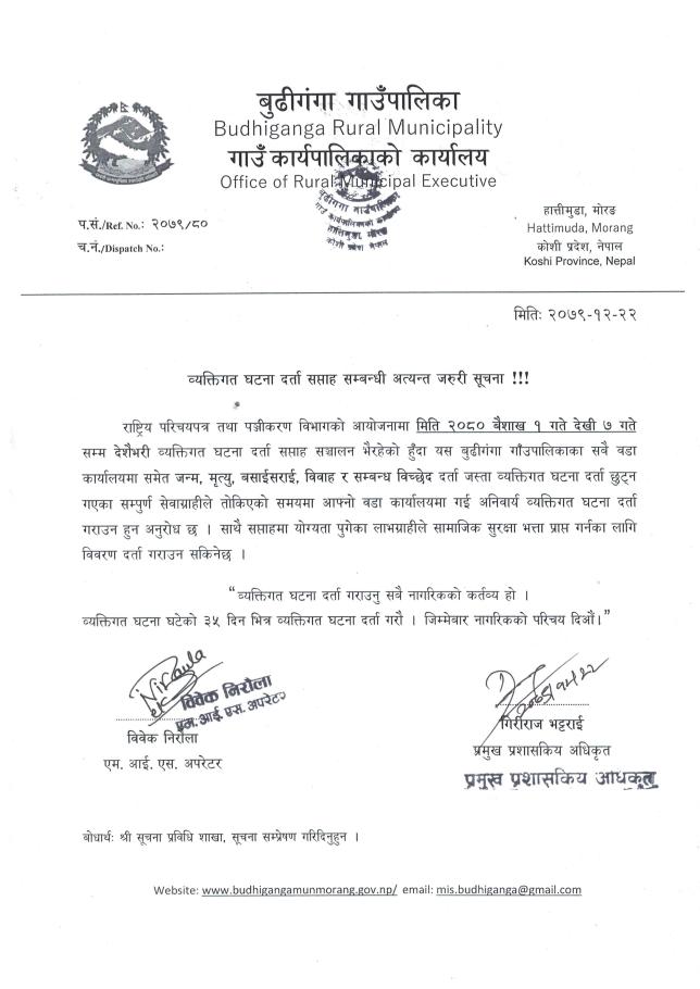 बुढीगंगा गाउँकार्यपालिकाको कार्यालयमा कार्यरत कर्मचारीहरुको सम्पर्क विवरण