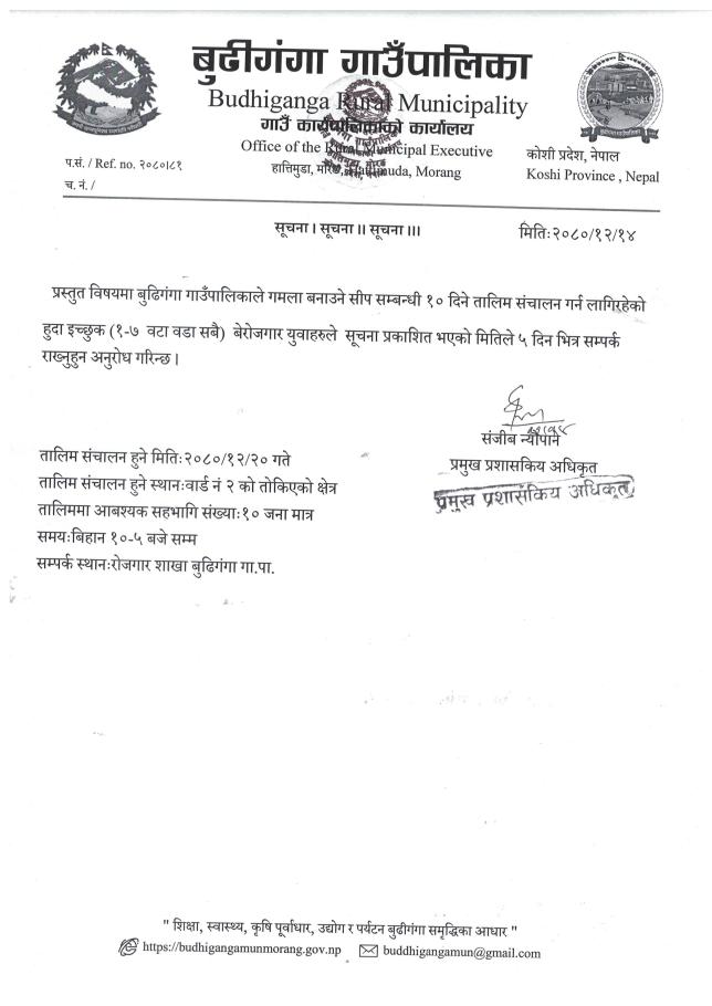 सूचना - तालिम सम्बन्धि