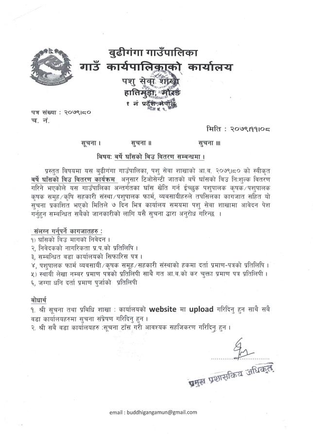 » सूचना - वर्षे घाँसको बिउ वितरण