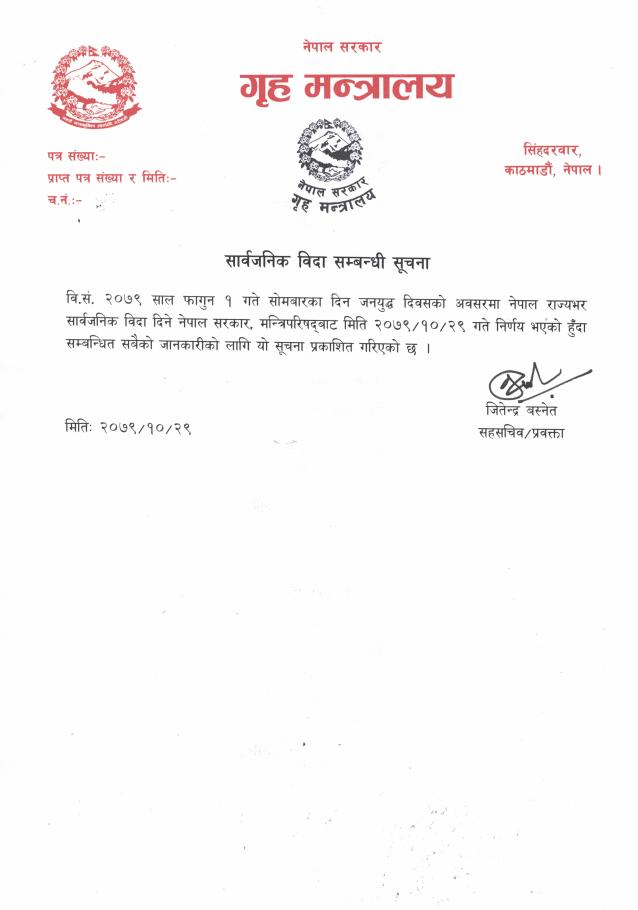 सूचना - सार्वजनिक विदा