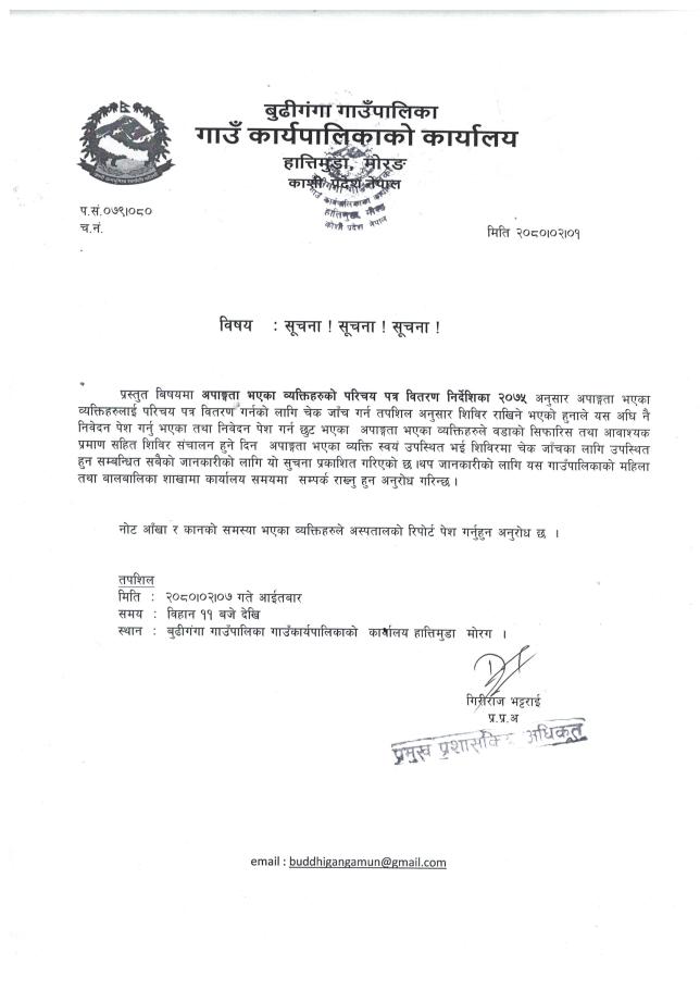 बुढीगंगा गाउँपालिका, गाउँ कार्यपालिकाको कार्यालय