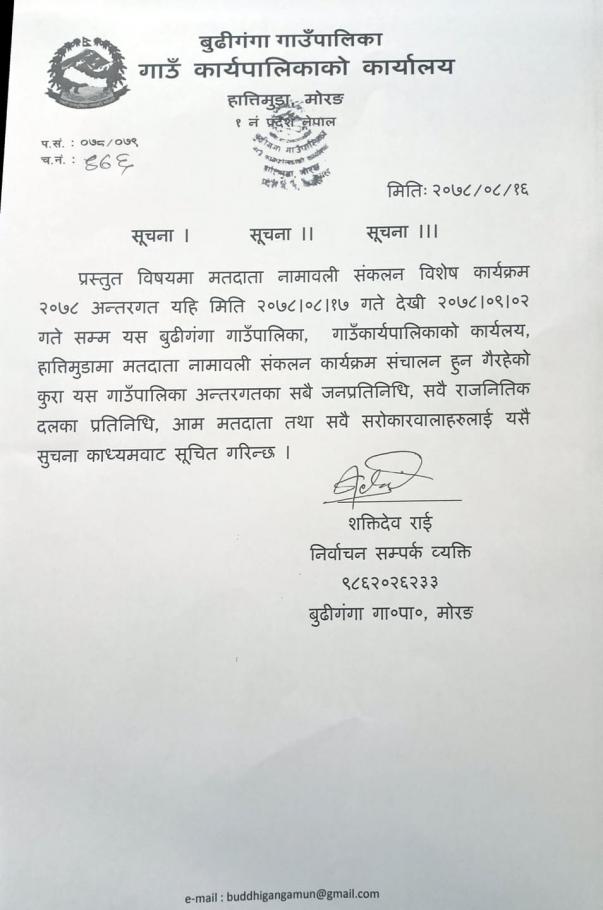 बुढीगंगा गाउँकार्यपालिकाको कार्यालयमा कार्यरत कर्मचारीहरुको सम्पर्क विवरण