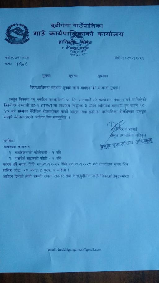 बुढीगंगा गाउँकार्यपालिकाको कार्यालयमा कार्यरत कर्मचारीहरुको सम्पर्क विवरण