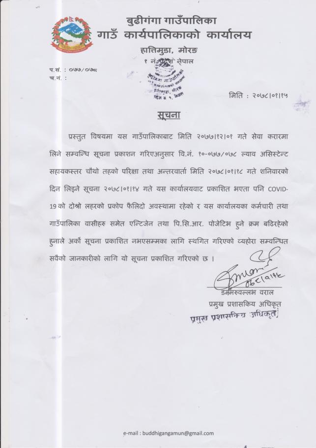 बुढीगंगा गाउँकार्यपालिकाको कार्यालयमा कार्यरत कर्मचारीहरुको सम्पर्क विवरण