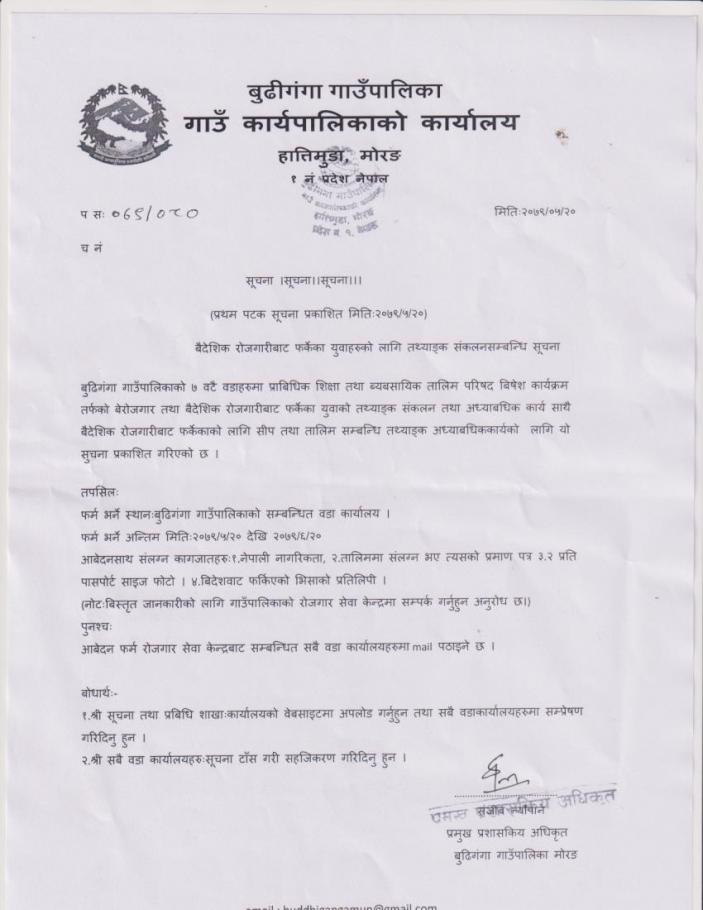 बुढीगंगा गाउँकार्यपालिकाको कार्यालयमा कार्यरत कर्मचारीहरुको सम्पर्क विवरण