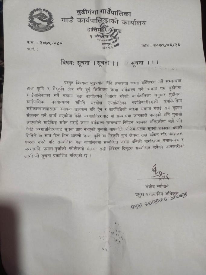 बुढीगंगा गाउँपालिका, गाउँ कार्यपालिकाको कार्यालय