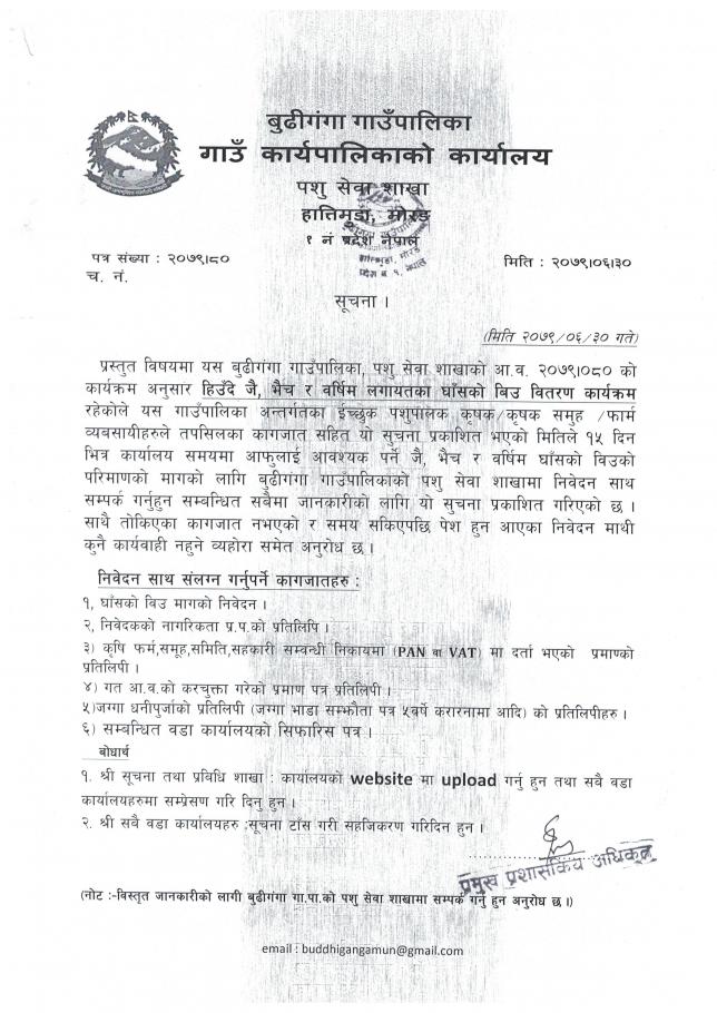 बुढीगंगा गाउँकार्यपालिकाको कार्यालयमा कार्यरत कर्मचारीहरुको सम्पर्क विवरण
