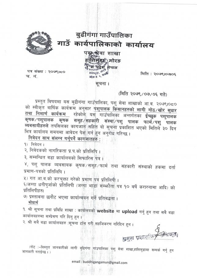 बुढीगंगा गाउँपालिका, गाउँ कार्यपालिकाको कार्यालय