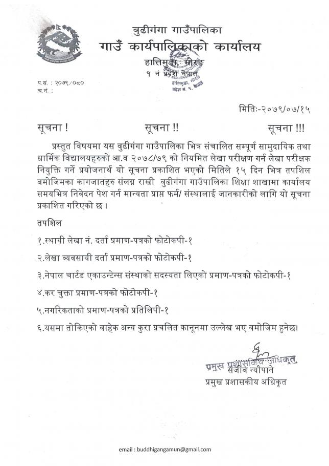 बुढीगंगा गाउँकार्यपालिकाको कार्यालयमा कार्यरत कर्मचारीहरुको सम्पर्क विवरण