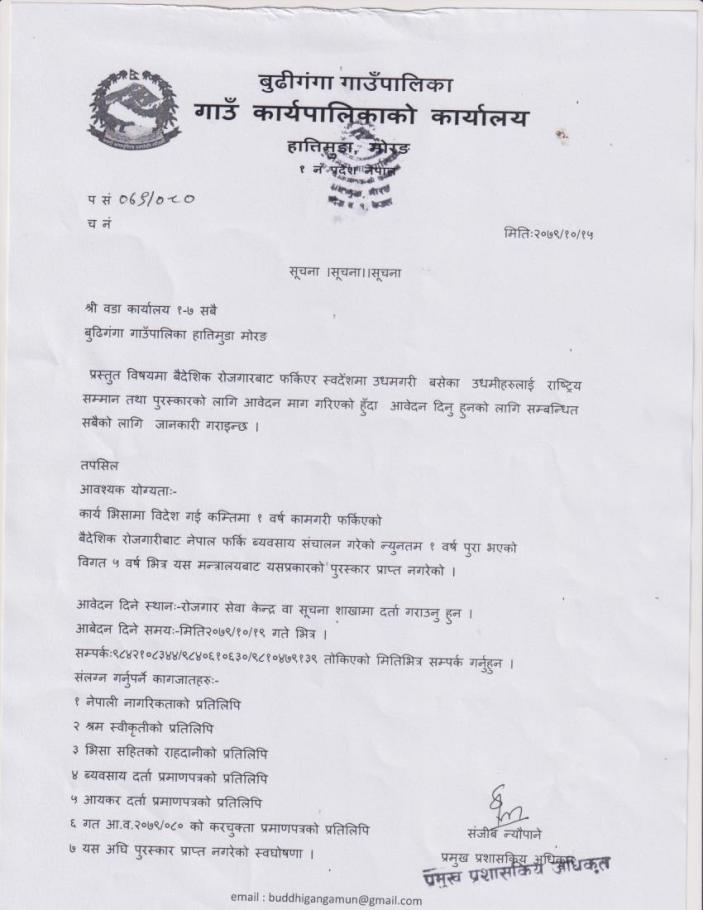 प्रस्तावना आव्हान सम्बन्धि सूचना ।
