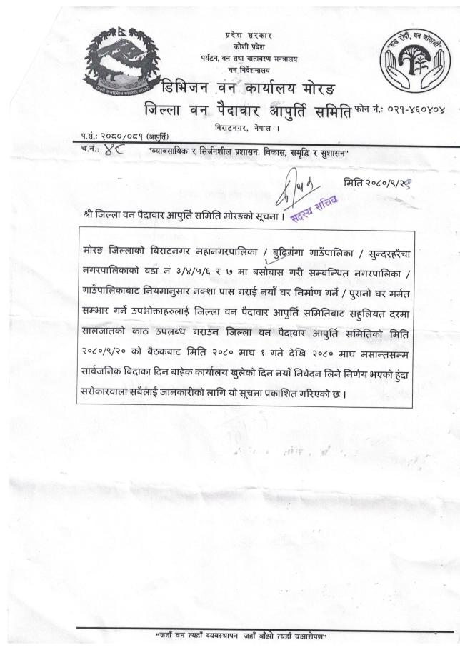 बोलपत्र पेश गर्ने आव्हानको सूचना ।