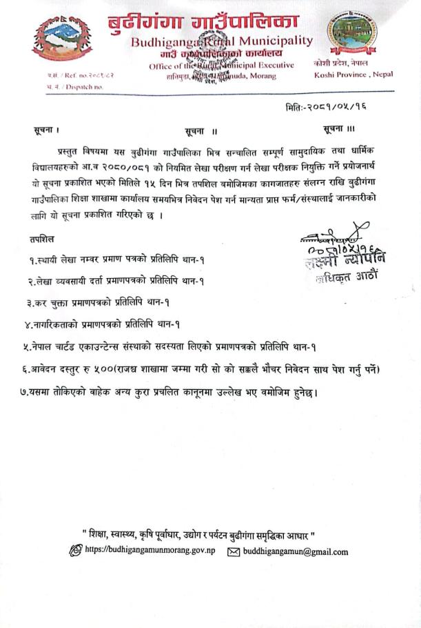 सार्वजनिक खरिद/बोलपत्र सूचना