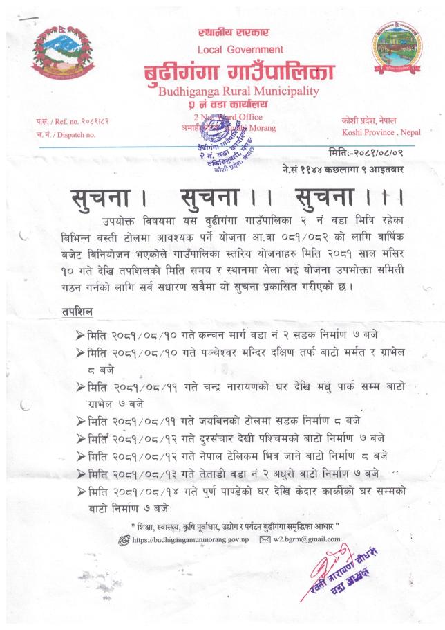 बुढीगंगा गाउँपालिका, गाउँ कार्यपालिकाको कार्यालय