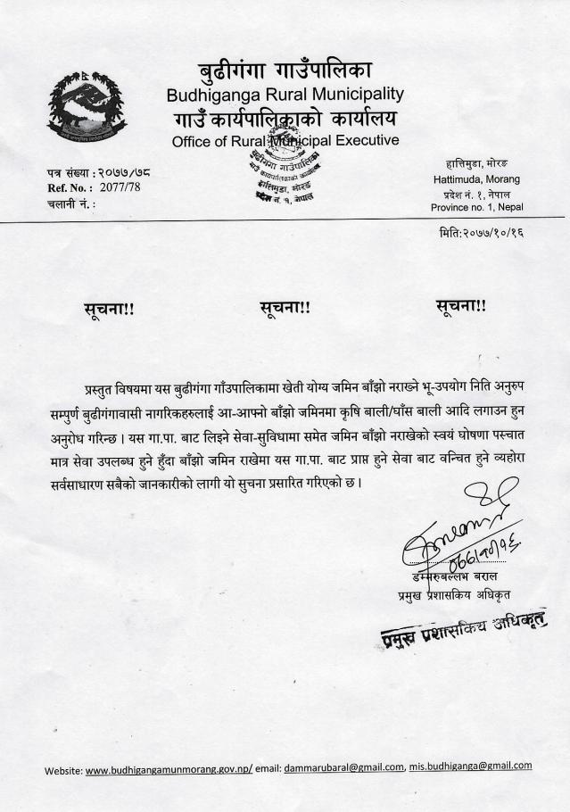 बुढीगंगा गाउँपालिका, गाउँ कार्यपालिकाको कार्यालय