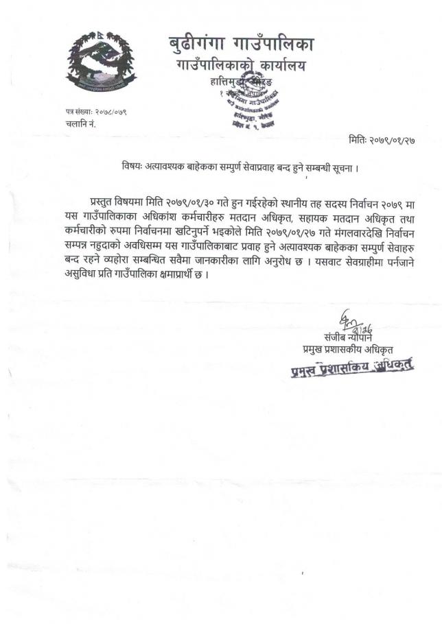 सेवाप्रवाह बन्दहुने सम्बन्धी सूचना