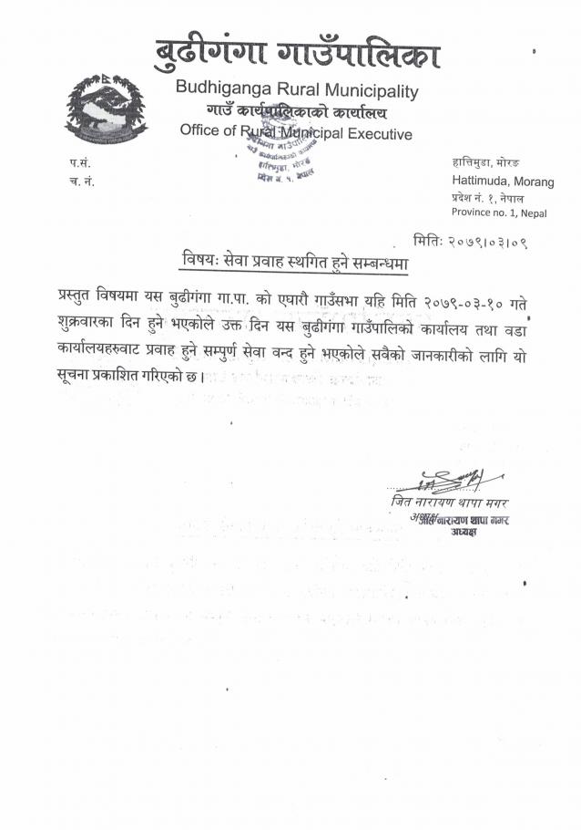 सेवा प्रवाह स्थगित हुने सम्बन्धमा