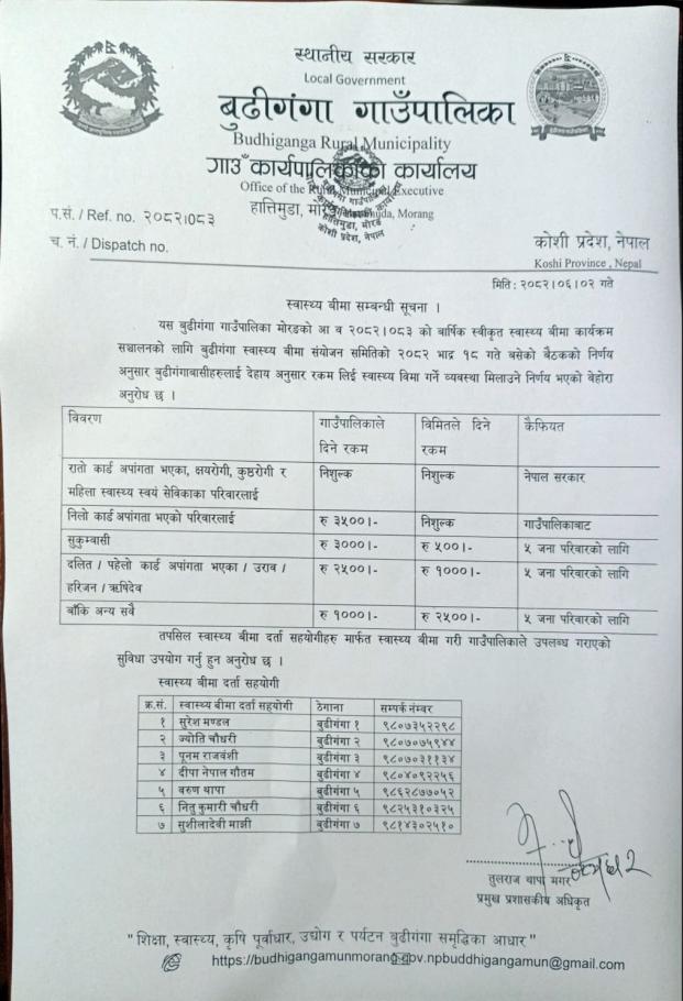 स्वास्थ्य बीमा सम्बन्धी सूचना ।