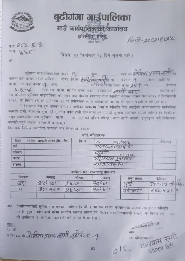 १५ दिने सूचना ।
