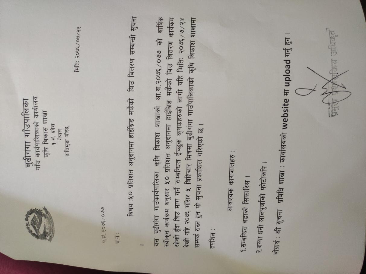 ५०% अनुदानमा हाईब्रिड मकैको बिउ बितरण सम्बन्धि सूचना