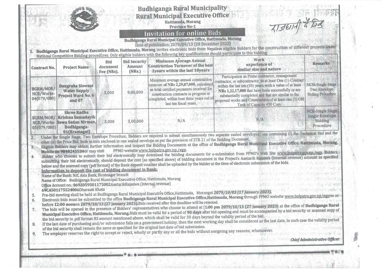 बोलपत्र पेश गर्ने आव्हानको सूचना ।