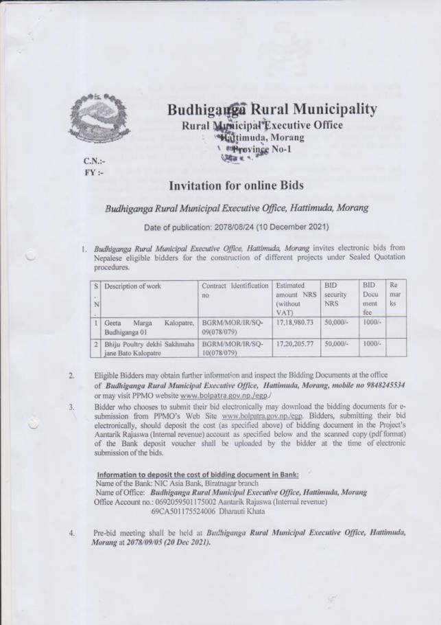 बोलपत्र पेश गर्ने आव्हानको सूचना ।