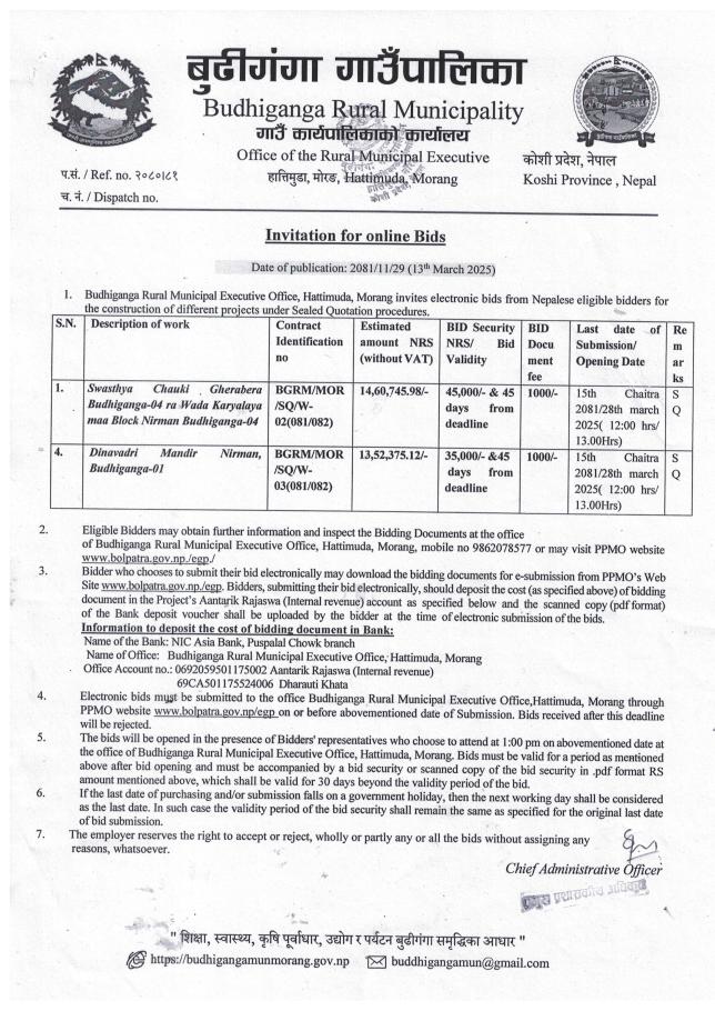 बोलपत्र पेश गर्ने आव्हानको सूचना ।