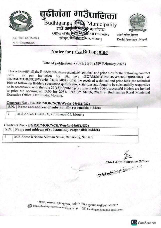 Notice for Price Bid Opening