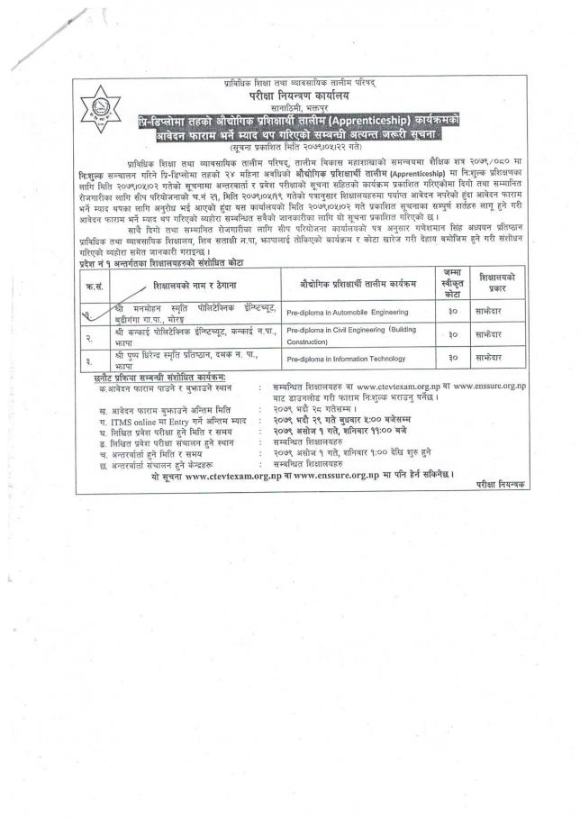 छात्रवृत्ति सम्बन्धी सूचना ।