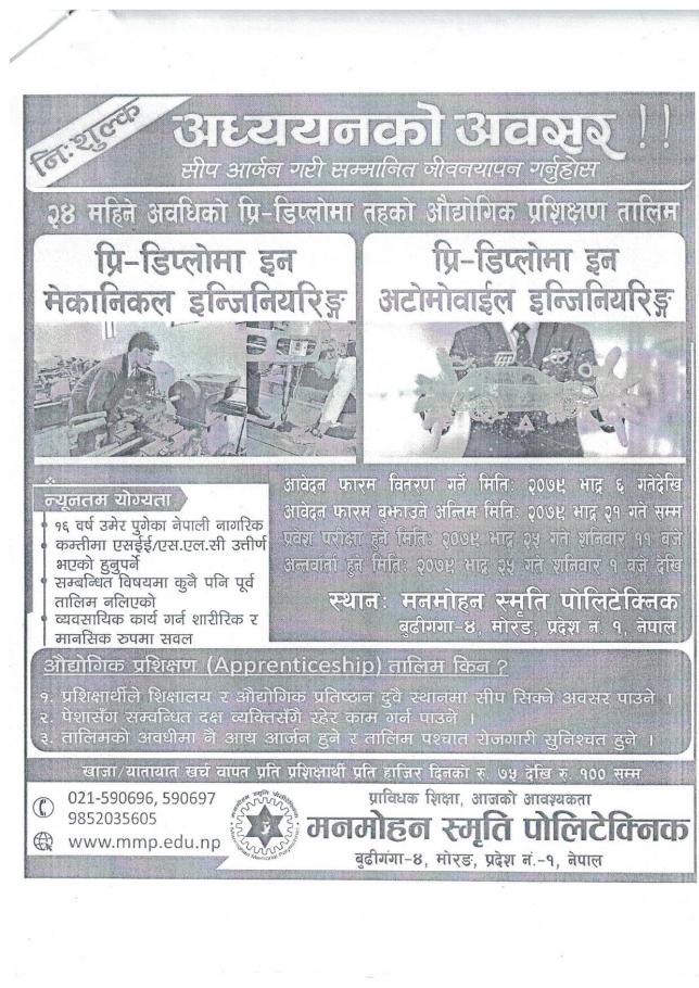 बोलपत्र पेश गर्ने आव्हानको सूचना ।