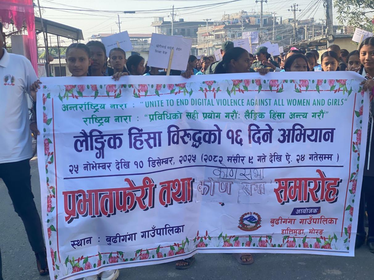 बुढीगंगा गाउँपालिका द्वारा आयोजित एवम् अनौपचारिक क्षेत्र सेवा केन्द्र इन्सेक कोशी प्रदेश र सिडिओ नेपाल र फेढो सस्था को सहयोग मा प्रभात फेरि लैङ्गिक हिंसा १६ औ दिनको दोस्रो दिनको कार्यक्रम सम्पन्न गरियो। धन्यवाद। जय बुढीगंगा