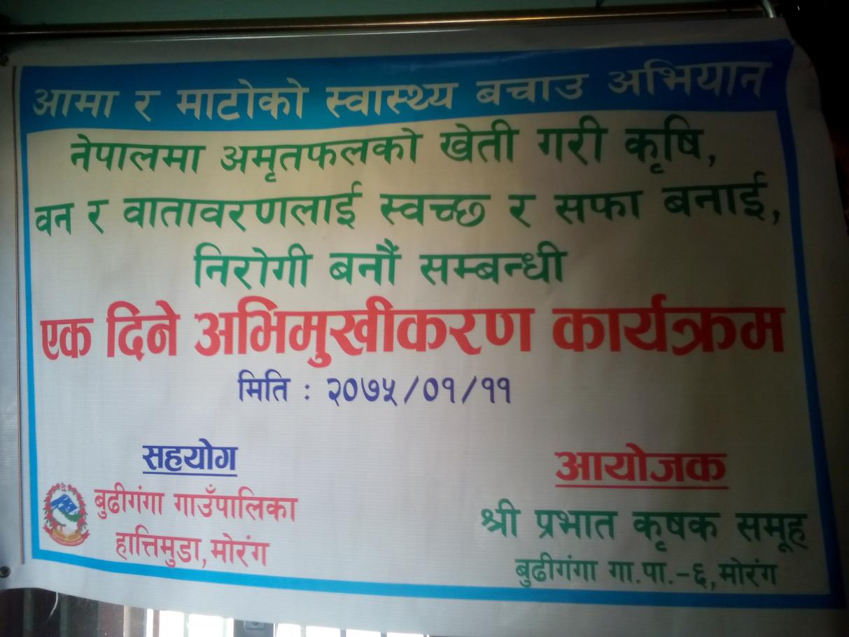 » एक दिने अभिमुखिकरण कार्यक्रम,श्री प्रभात कृषक समूह